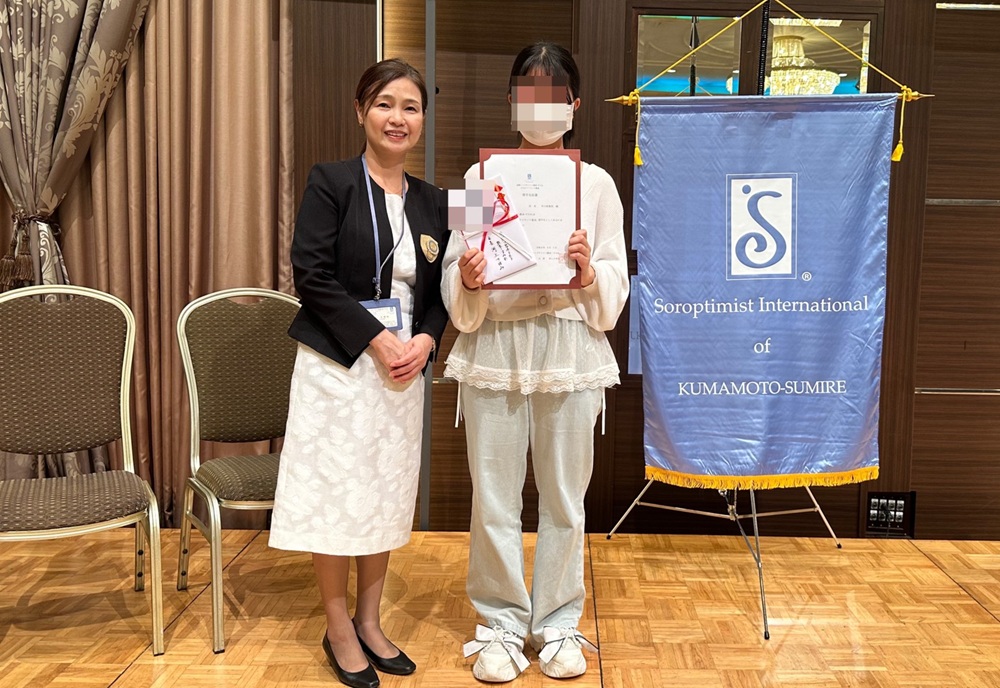 今年度も2人の方に奨学金を贈呈しました。お一人目は今年度「夢を生きる賞」日本南リジョン賞を受賞され、准看護師を目指している方。お二人目は社会福祉士を目指している大学生の方です。